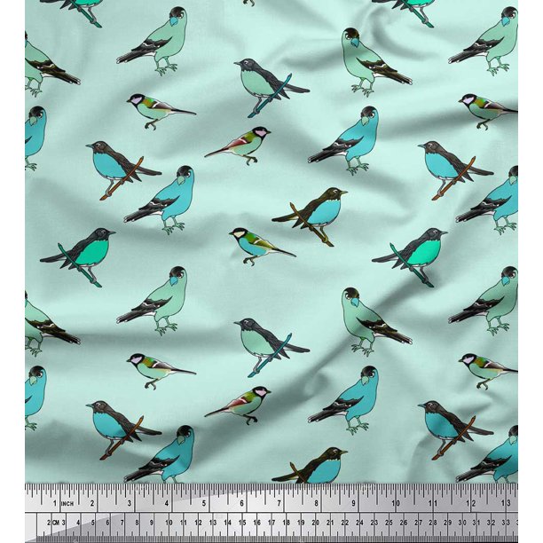Soimoi Green Poly Georgette Fabric Artistic Bird Print Sewing Fabric Yard 52 Inch Wide Walmart Com